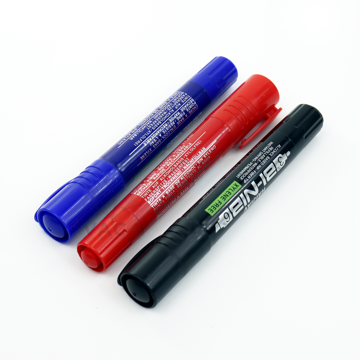 10 marcadores permanentes para CD y uso universal con doble punta cada uno, gruesa y fina. 1 Marcador permanente Rojo 1 Marcador permanente Azul PAQUETE INCLUYE : *10 Marcadores Negros Doble Punta *Punta Gruesa *Punta Delgada