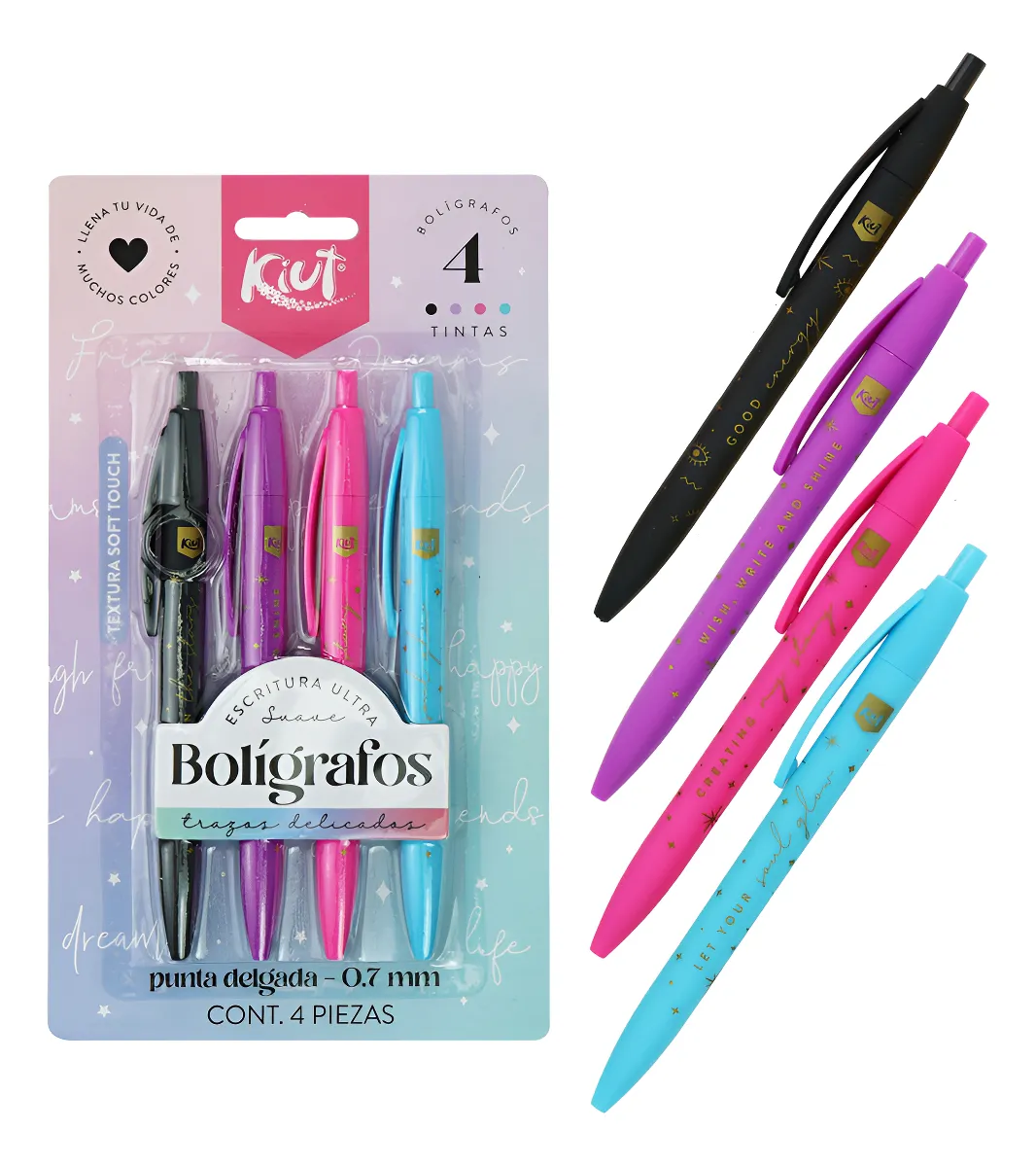 4 Bolígrafos Kiut Punta Delgada 0.7mm Soft Touch Ultra Suave