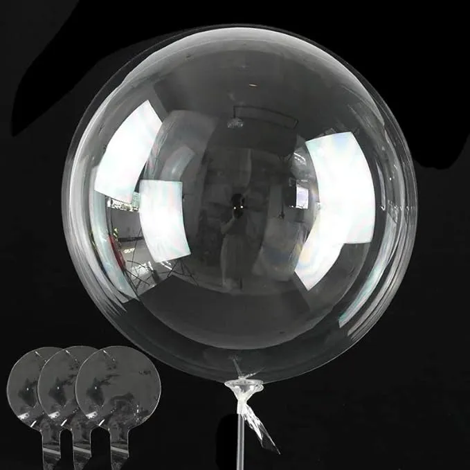 Estos globos de burbujas transparentes no contienen palos, confeti, plumas, cintas, luces Material TPU: nuestros globos Bobo están hechos de material TPU de alta calidad confiable, que no es poroso e inodoro, más elástico y duradero, no se rompe y se puede utilizar con helio o aire. 1-Antes de inflar el globo, estirar un poco por las orillas con ambas manos. 2-Inflalo con una bomba manual o eléctrica para inflar globos, si eliges bomba manual inflar con mucha fuerza. 3-Infla y desinflar el globo al menos 3 veces o hasta obtener el tamaño deseado. 4-Si lo vas a inflar con helio aplica el 3er paso antes de ponerle el helio. Medida Desinflado : 11.5 cm