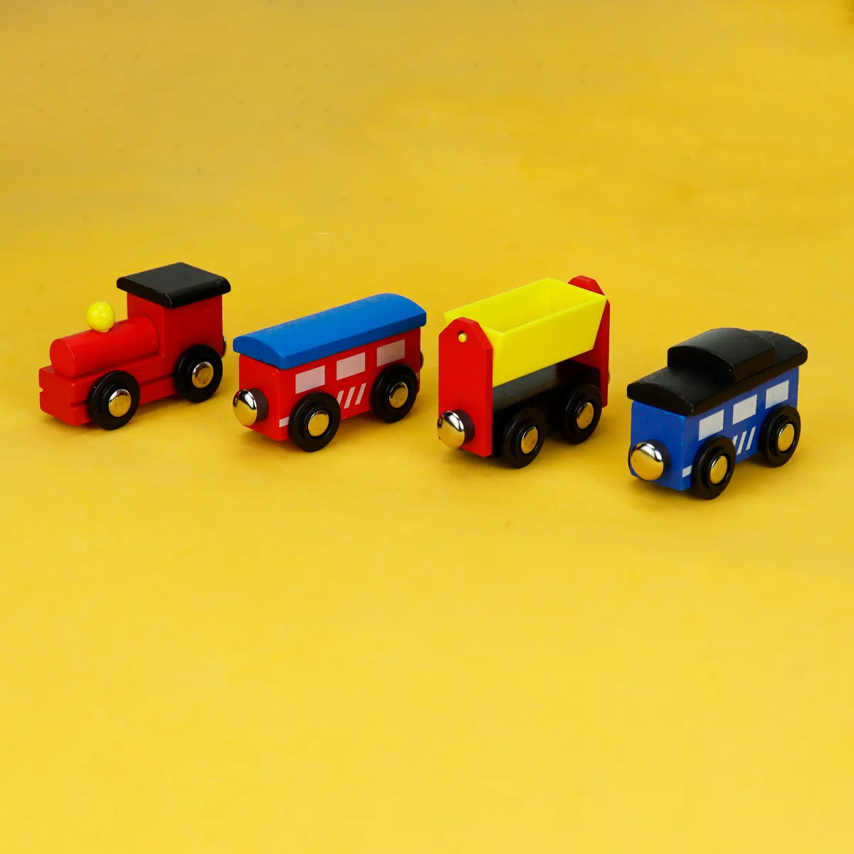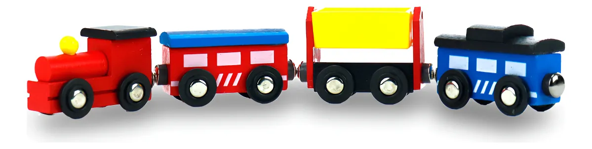 Tren de juguete que se engancha por medio de imanes. Incluye 1 locomotora con 3 vagones extras de diferentes colores Aproximadamente cada pieza de vagon mide 6.5 largo x 3.5 alto x 2.5 ancho El juguete tren de la marca VG es una opción ideal para los más pequeños de la casa, diseñado especialmente para niños de 2 a 4 años. Fabricado en madera y plástico, este tren combina durabilidad y seguridad, permitiendo que los niños jueguen y exploren su imaginación sin preocupaciones. Con un tamaño compacto de 6.5 cm de largo, 2.5 cm de ancho y 3.5 cm de alto, es perfecto para manos pequeñas y fácil de manipular. El tren cuenta con un ingenioso sistema de enganche de imán, lo que permite a los niños conectar varios vagones y crear su propio ferrocarril. Este juguete fomenta el desarrollo de habilidades motoras y la coordinación, al tiempo que estimula la creatividad y el juego simbólico.