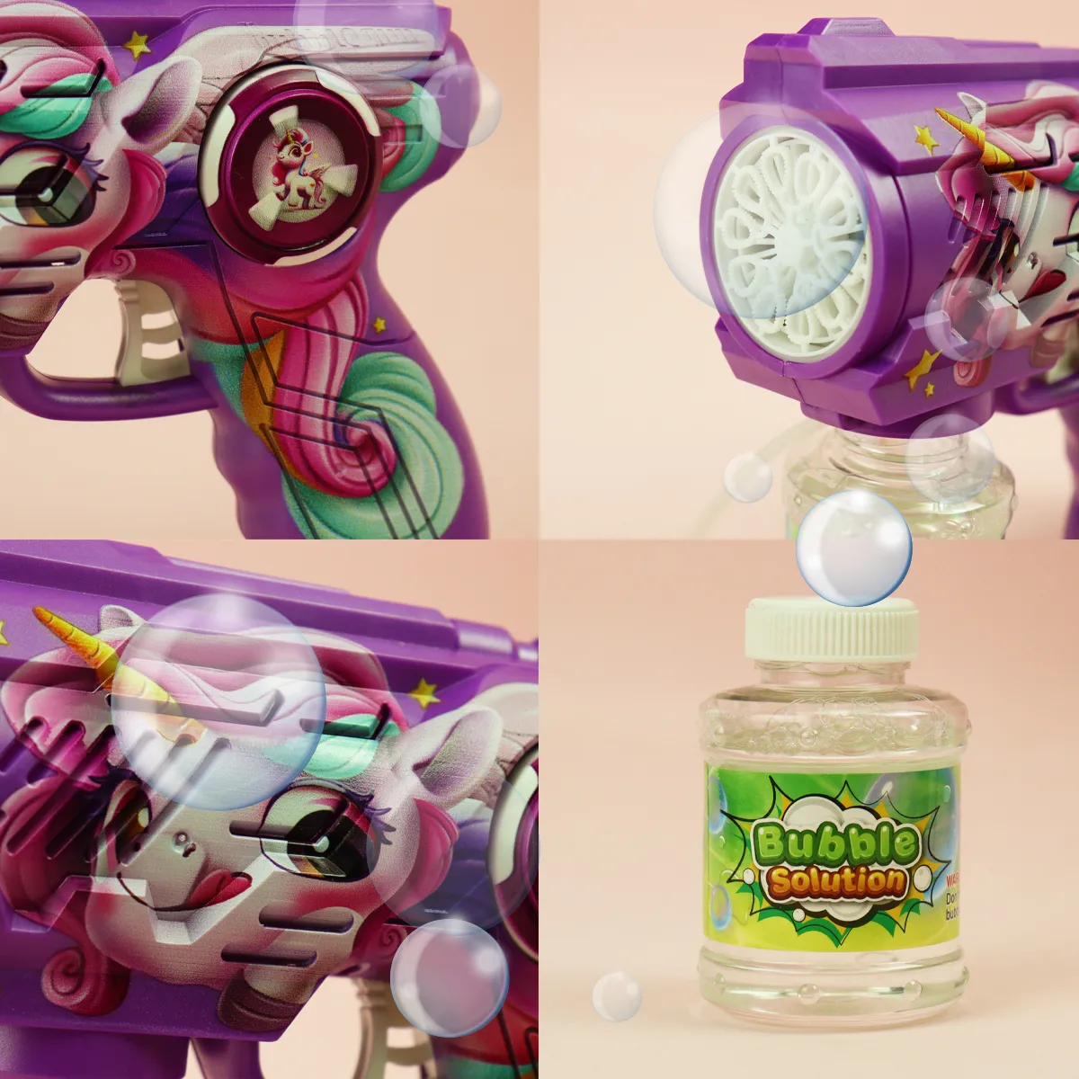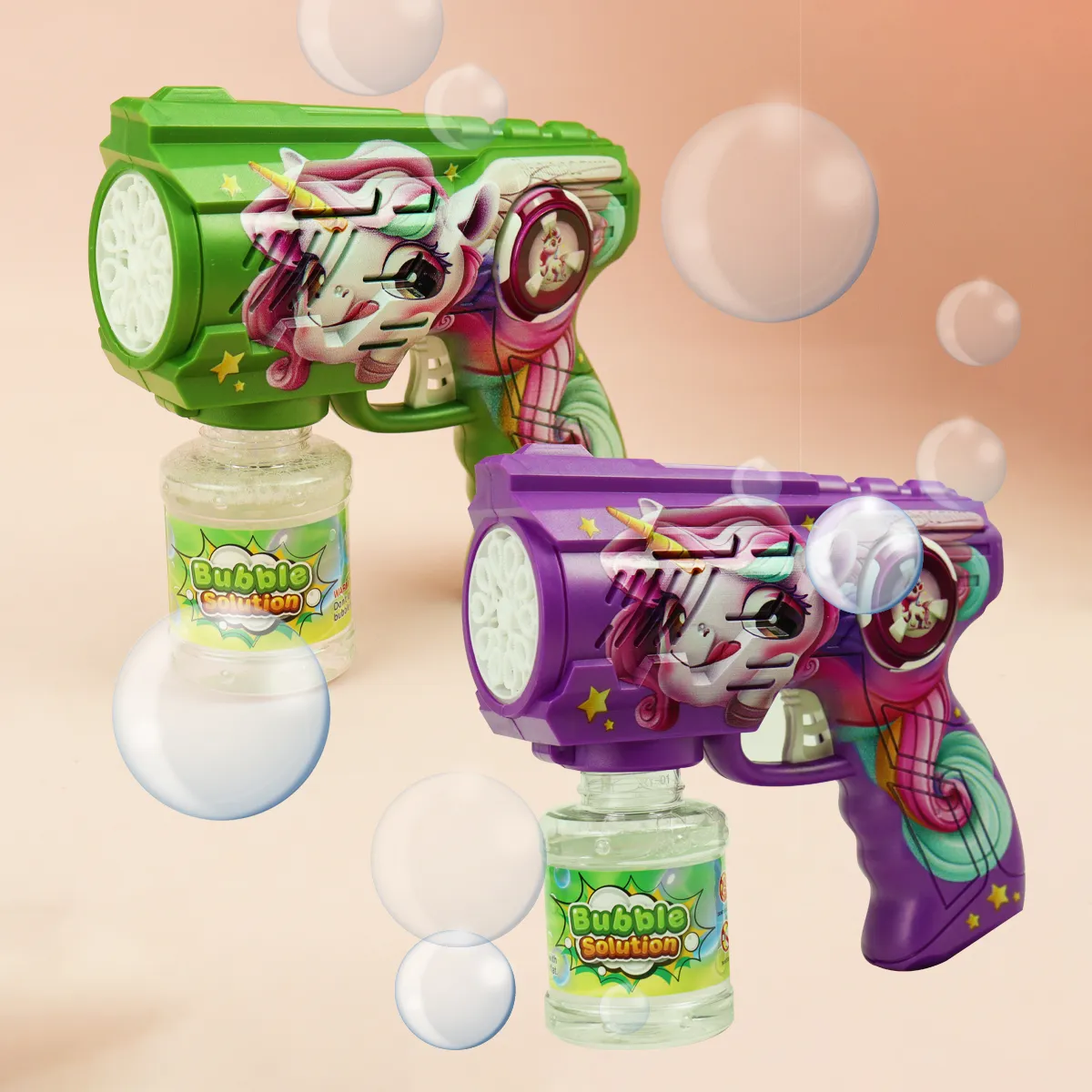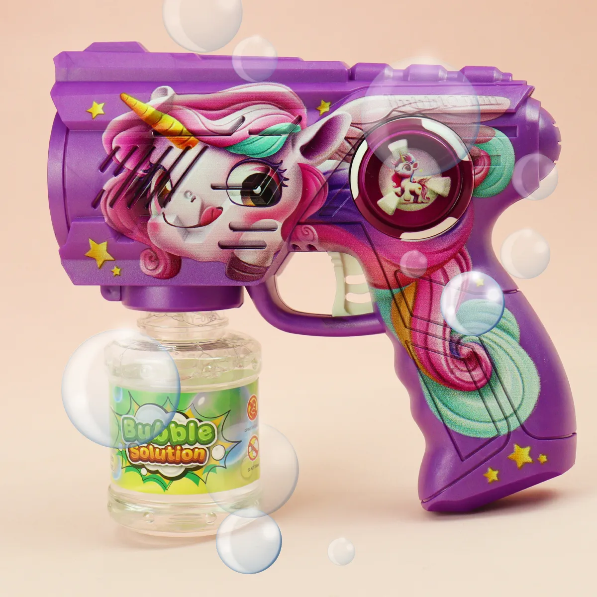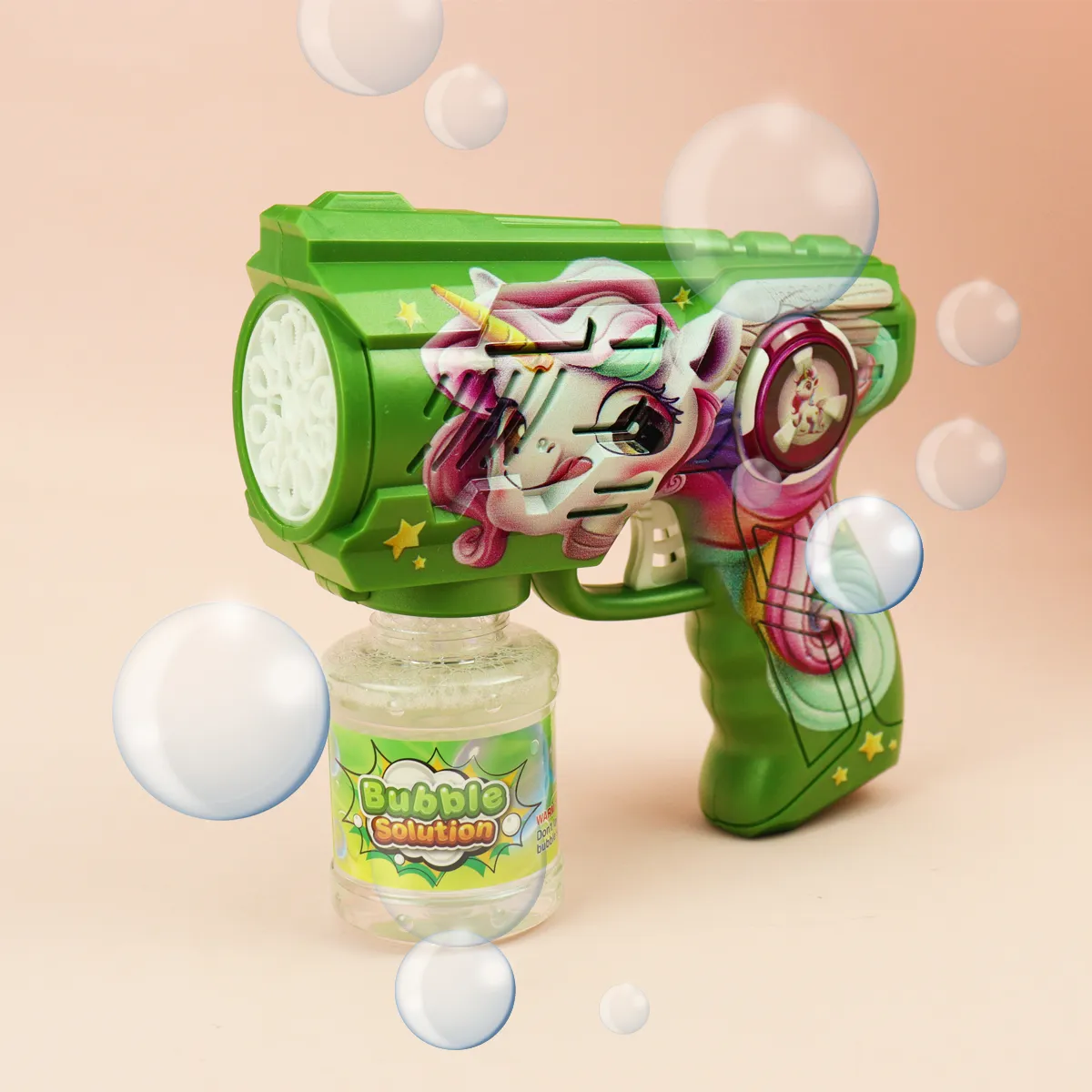Juego portátil con luz y sonido, estilo lindo y divertido, con un diseño poroso y con burbujas intensas. La Pistola De Burbujas Unicornio de la marca VG es el juguete ideal para que los niños disfruten de horas de diversión al aire libre. Diseñada especialmente para niños de 5 a 7 años, este burbujero combina un atractivo diseño de unicornio con la magia de las burbujas, creando un ambiente encantador en cualquier ocasión. Fabricada en plástico resistente, esta pistola es fácil de manejar y segura para los más pequeños. Funciona con pilas AA y viene con líquido para burbujas, lo que garantiza que la diversión no se detenga. Además, su diseño incluye luces que iluminan las burbujas mientras flotan, añadiendo un toque especial a cada juego. Ideal para fiestas, días de campo o simplemente para jugar en el jardín, la Pistola De Burbujas Unicornio es perfecta para estimular la imaginación y la creatividad de los niños. Con su funcionamiento sencillo y atractivo visual, se convertirá en el centro de atención en cualquier reunión. Regala a tus hijos la oportunidad de crear momentos mágicos y llenos de alegría con este encantador juguete. La Pistola De Burbujas Unicornio es más que un simple juguete; es una invitación a explorar y disfrutar del aire libre mientras se divierten con amigos y familiares.