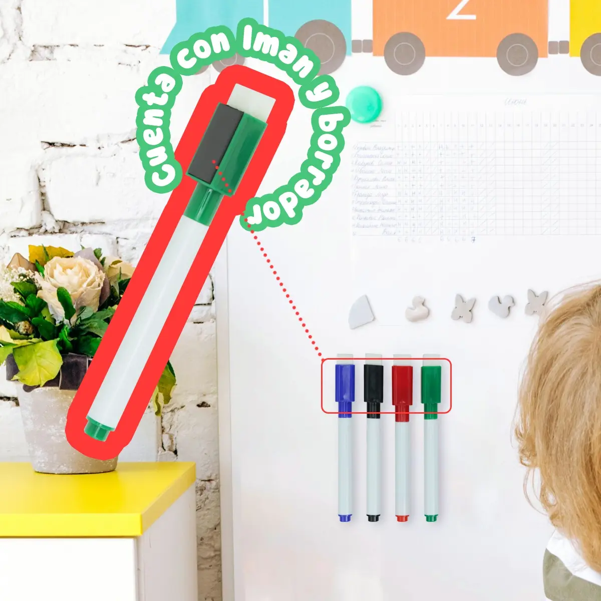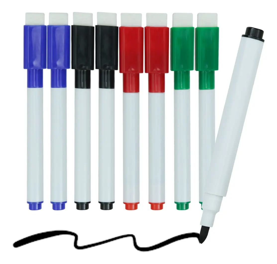 Este set de 8 plumones en tono de colores es ideal para utilizar en pizarrones y pintarrones. Es muy pratico a la hora de usarlo ya que en la tapa lleva incluido un borrador Su altura de 11.5 cm lo hace perfecto para personas a partir de los 10 años de edad. Con un ancho de 1 cm, estos plumones son fáciles de manejar y proporcionan trazos precisos. Recomendado desde niños hasta adultos, este set es ideal para actividades educativas, presentaciones o simplemente para dar rienda suelta a la creatividad. ¡No te pierdas la oportunidad de adquirir este práctico y versátil set de plumones magnéticos!