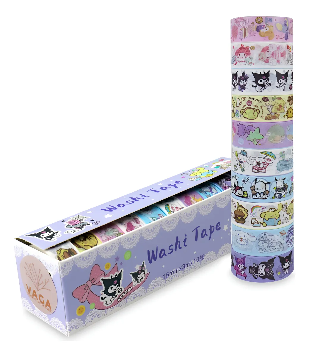 Descubre el encanto de personalizar tus accesorios de papelería con nuestro paquete de 10 cintas decorativas Washi Tape. Cada cinta, con un largo de 3 metros y un ancho de 15 mm, presenta adorables diseños de Kuromi que capturarán tu creatividad. La marca genérica asegura un producto de calidad con un acabado mate que realza la belleza de tus creaciones. Estas cintas no son transparentes, pero sí permiten la escritura sobre ellas, lo que las hace perfectas para etiquetar y decorar. Fabricadas con materiales duraderos, soportan temperaturas de hasta 50 °C. Aunque no incluyen dispensador, su adhesión suave es ideal para aplicar en superficies como cartón y papel, permitiendo reposicionarlas fácilmente sin dejar residuos. Con el modelo SLO600, tendrás una amplia gama de patrones para elegir, asegurando que cada proyecto sea único